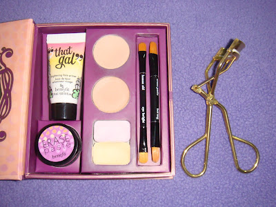 I love how Benefit designs and packages their products. They just look so pretty and appealing! The kit opens up like a diary; how cute is that? However, the first thing I thought of when I saw this kit was how tiny it is! I seriously wasn't expecting it to be so tiny. It's about as big as a standard eye lash curler.